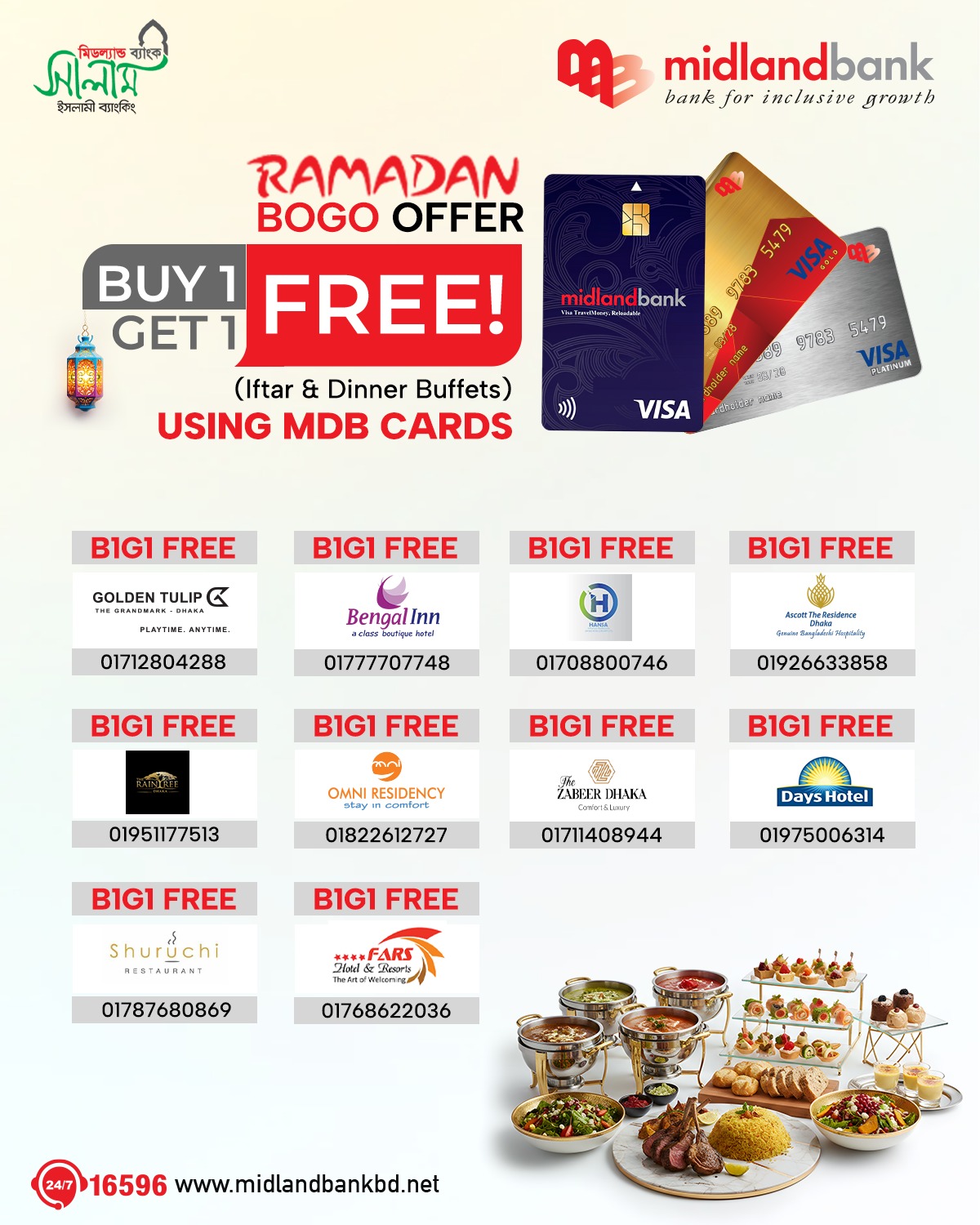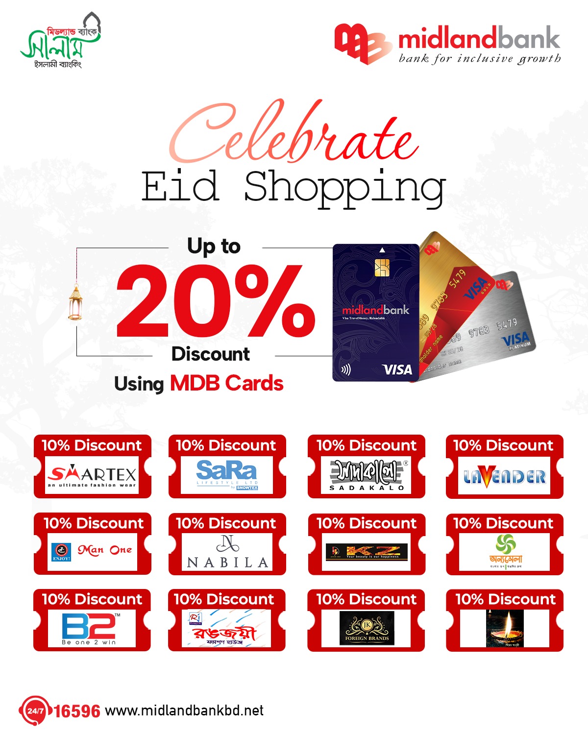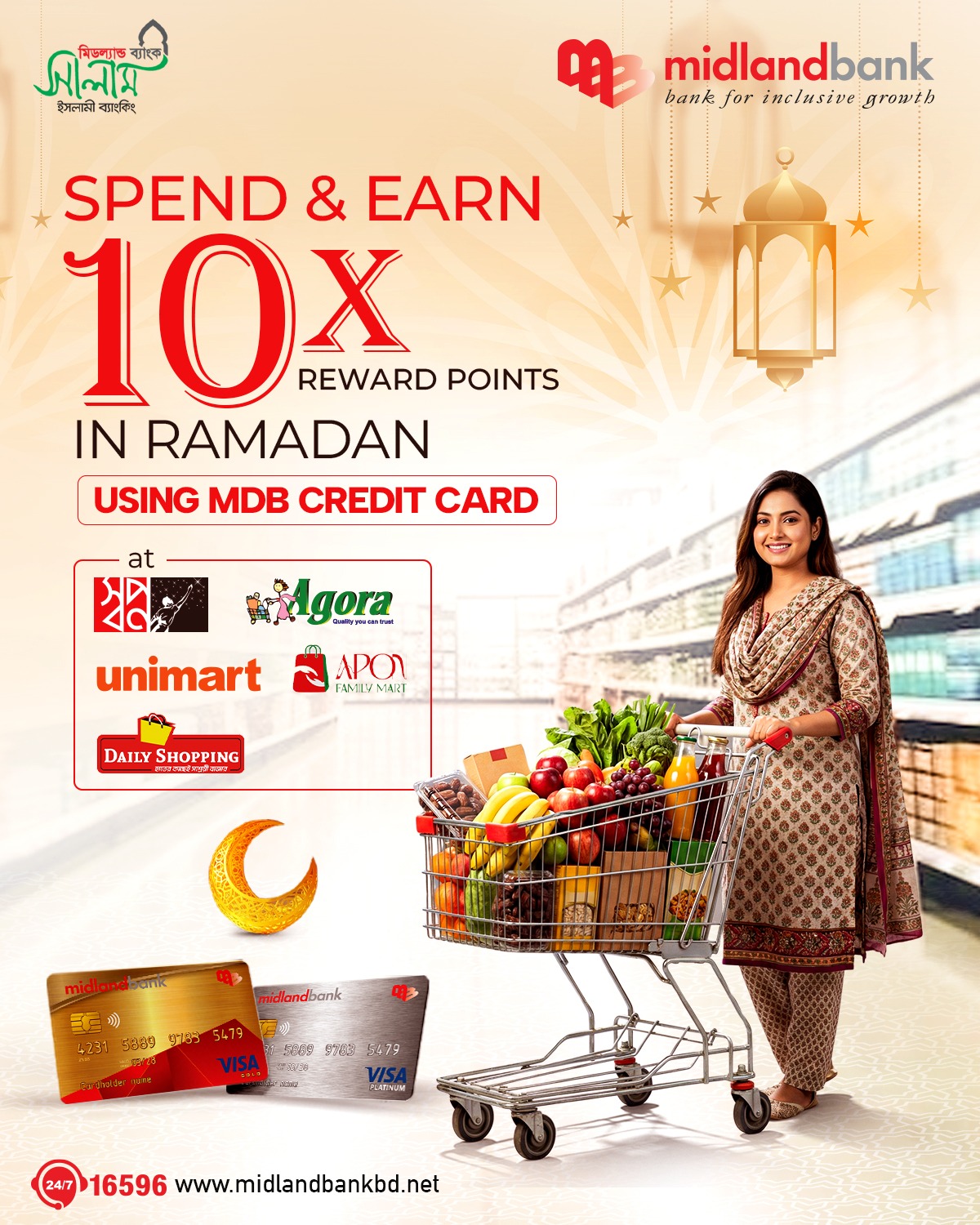 Simply call 16596 or email us at contact.centre@midlandbankbd.net and redeem your reward points!