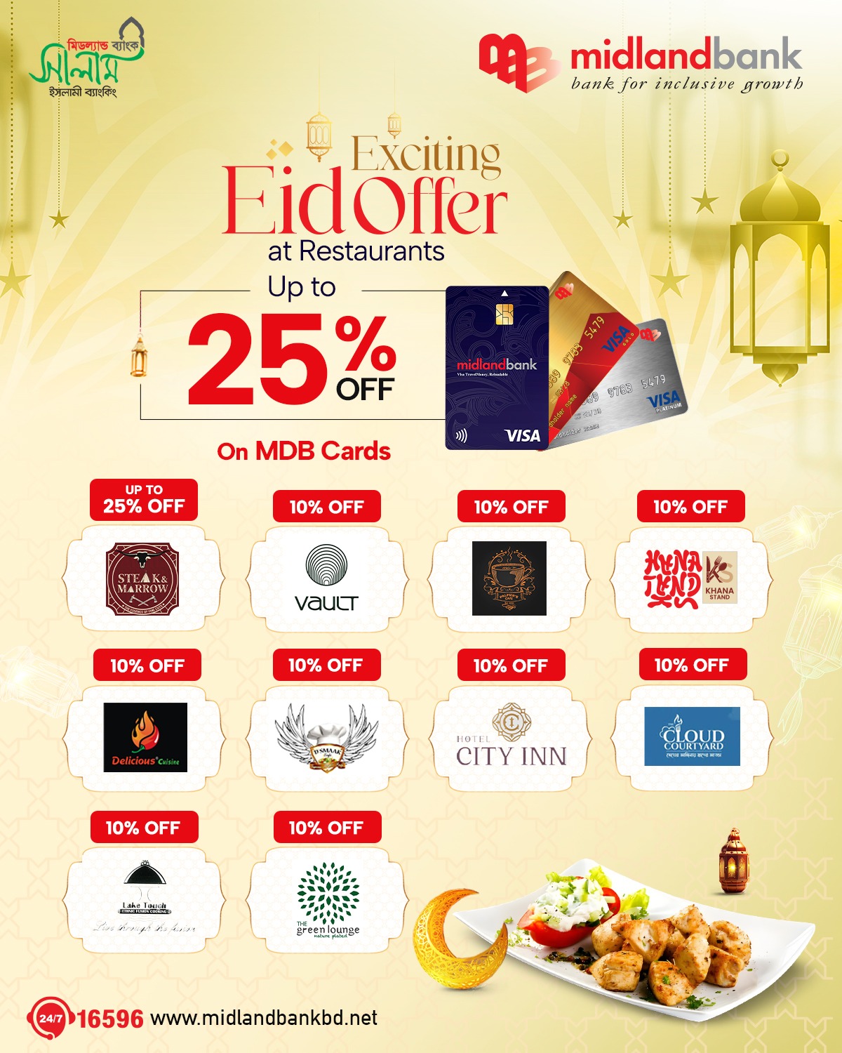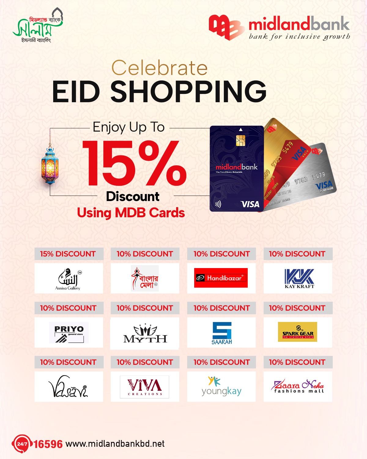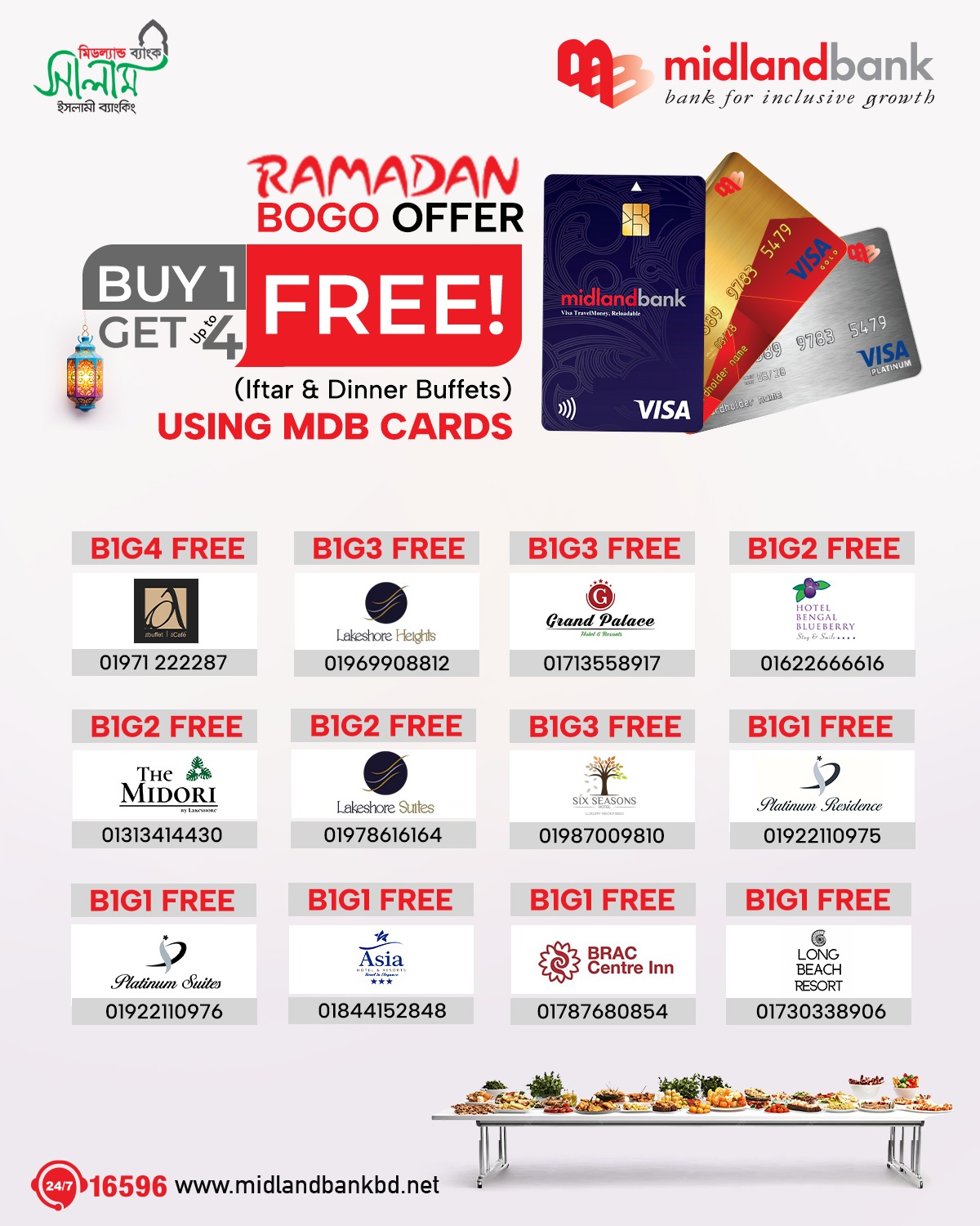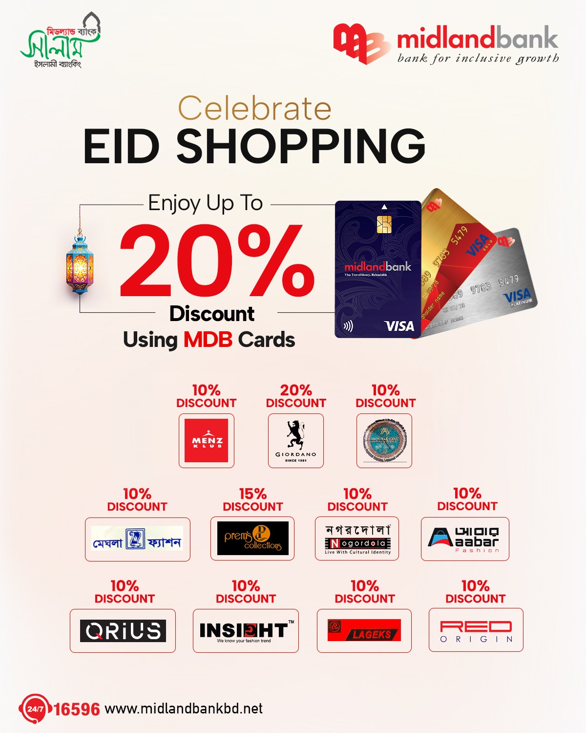 Simply call 16596 or email us at contact.centre@midlandbankbd.net and redeem your reward points!