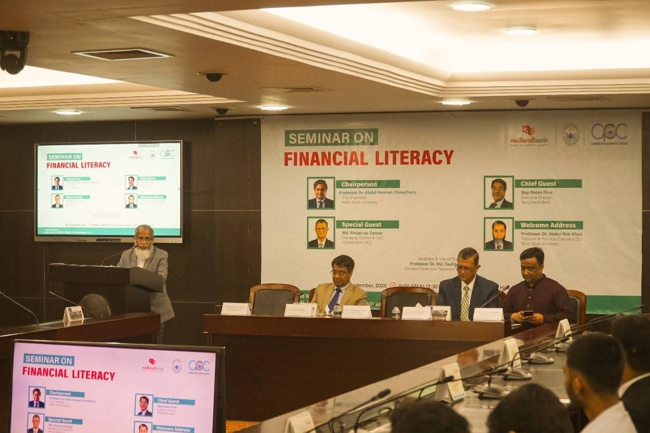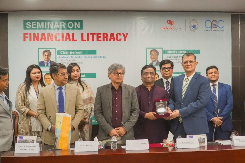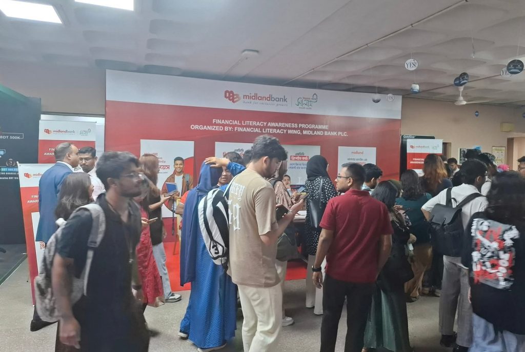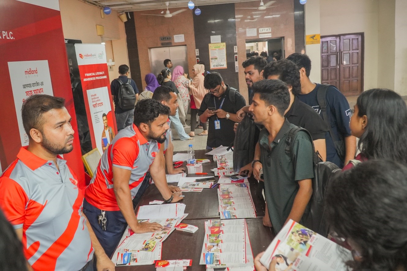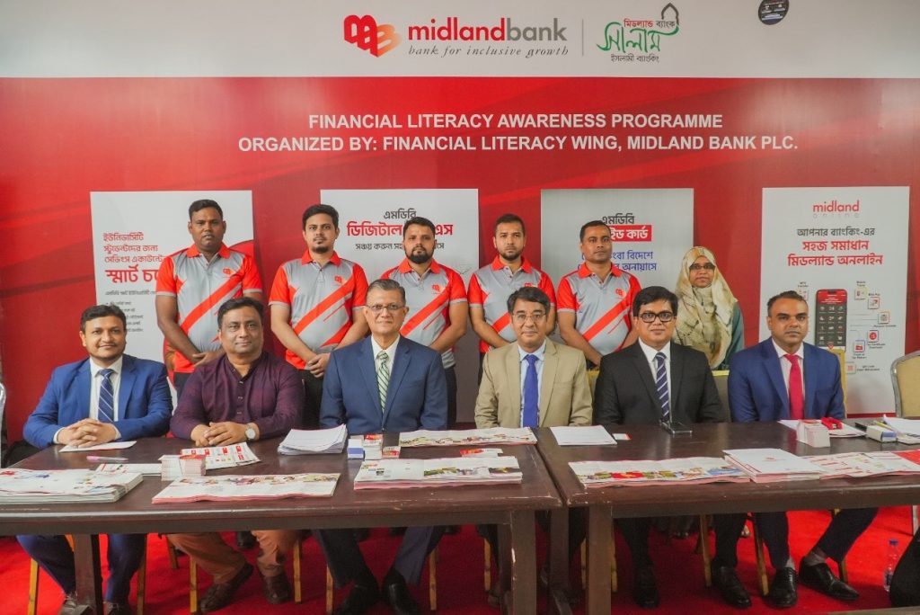 Mohd. Javed Tarek Khan, Head of Institutional Banking and Member of the Financial Literacy Wing; Md. Rashed Akter, Head of Retail Distribution & Head of the Financial Literacy Wing; and Imran Al Habib, Head of Agent Banking and Member Secretary of the Financial Literacy Wing of Midland Bank were also present in the programme along with other officials.