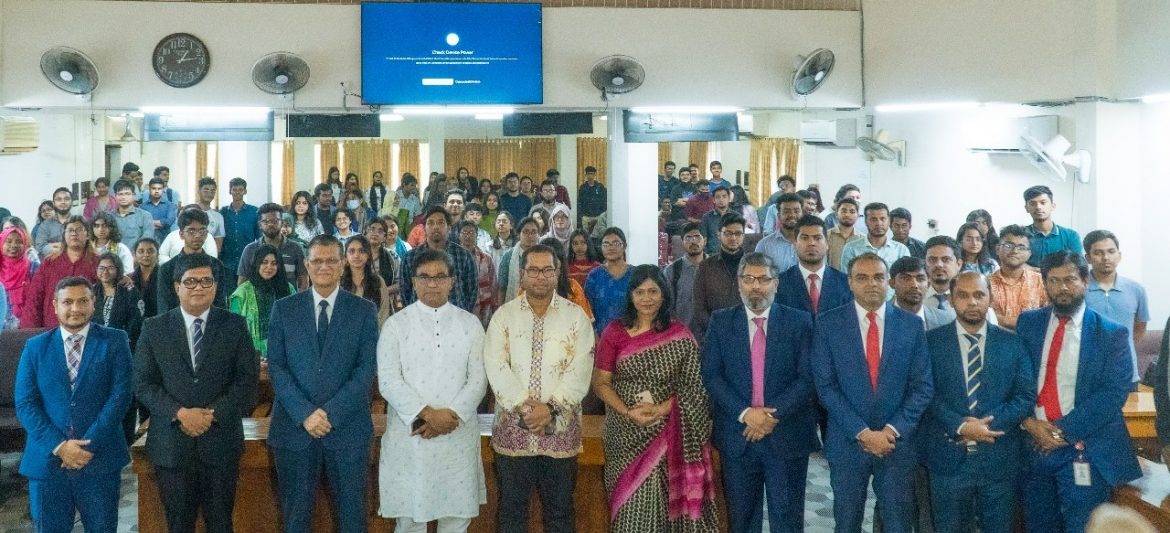 The seminar focused on enhancing awareness of financial literacy among students and future professionals, making them aware about financial inclusiveness, sustainable economic development, access to finance and equipping them with essential knowledge to make informed financial decisions.The Bank had setup an information booth at Jahangirnagar University campus from 9th till 13th November 2025 to create awareness about banking products and services among the students and faculty members of the University.