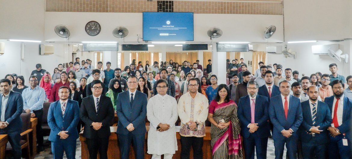 The seminar was attended by distinguished guests, faculty members, and students of the University. Among them, Mr. Md. Rashed Akter, Head of Retail Distribution Division, Financial Literacy Wing and Chief Bancassurance Officer (CBO); Mr. Mohammad Faruq Ur Rahman, Head of Agent Banking Division, Retail Liability & Manager, Financial Literacy Wing; and Mr. Md. Ashraful Islam, Head of Retail Sales Department, along with other officials from Midland Bank were present.