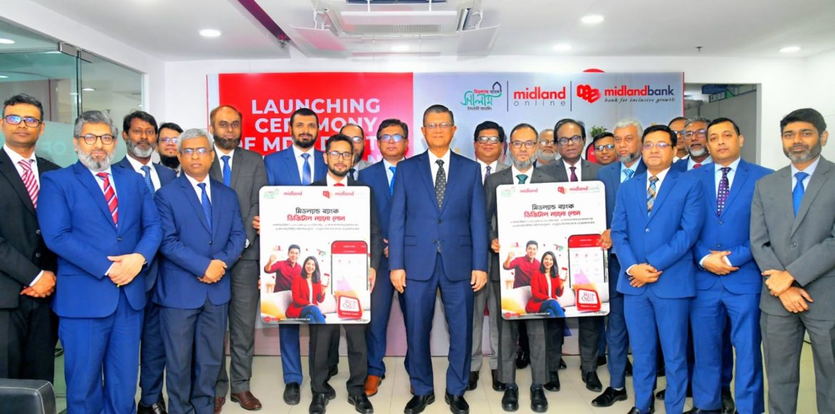Midland Bank PLC. (MDB) launched “MDB Digital Nano Loan” for all existing customers, marking a significant step in its digital banking journey. The initiative aligns with Bangladesh Bank’s directive under BRPD Circular No. 11 dated June 02, 2022, which emphasizes the promotion of End-to-End Digital Lending to enhance financial inclusion, improve the living standards of marginalized communities through Digital Small Loans, and diversify banks’ credit portfolios by reducing reliance on corporate loan concentration.
