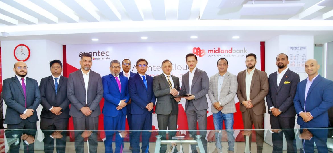 Midland Bank PLC. has signed a Memorandum of Understanding (MoU) with Axentec PLC, a subsidiary of Robi Axiata, to adopt advanced cloud technology for its data center management and computing needs.