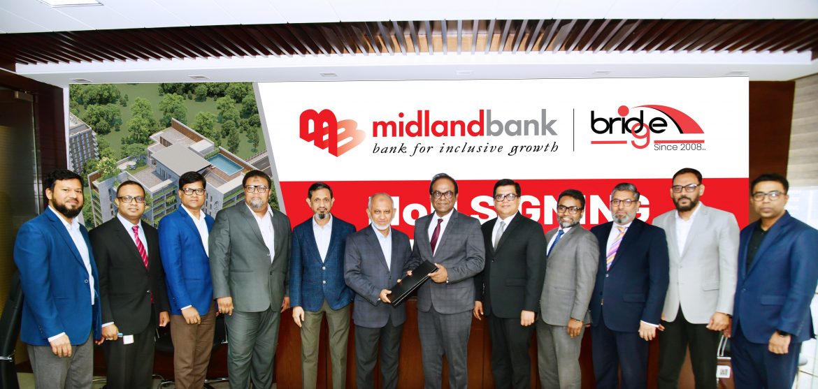 The MoU signing ceremony was held at the Bridge Holding’s Head Office in Gulshan-2, Dhaka. Mr. Md. Zahid Hossain, Managing Director (Current Charge) of Midland Bank and Mr. Md. Harun-ur Rashid, Chairman, Bridge Holdings Ltd., signed the agreement on behalf of their respective organizations.